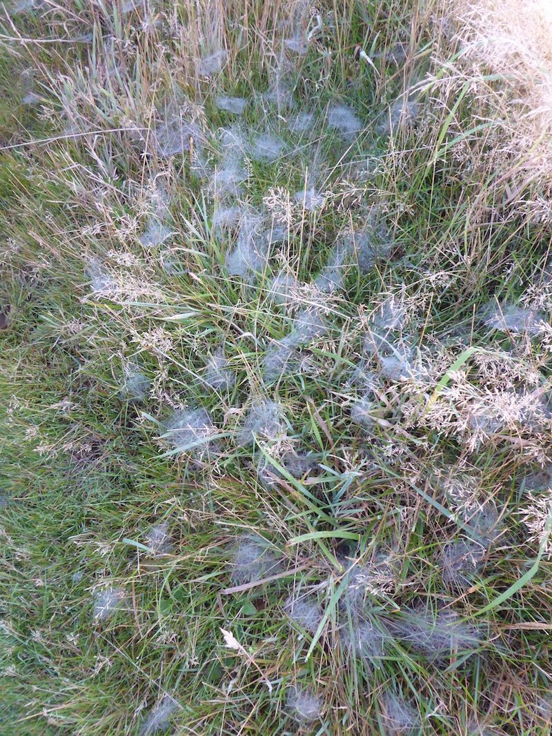 But in amongst this festival of rain we woke to days of ‘sunshine and scattered showers’ and they treated us to a veritable feast for the eyes and ears. Ever present were the long shadows of the October suns lounging over the landscape and bringing new shapes and structures to the hedgerows and fields. There were crunchy frosts underfoot in the early morning, with hundreds of little spider webs draped across the field, dripping with wet pearls of light. I saw a solitary kestrel at dawn, airborn at the tip of the tree tops, under a moon still lingering in the sky. Its old country name is ‘windhover’, it can keep its head still while it hovers. A peaceful moment, rudely interrupted by a large, bold buzzard determined to claim the space, the kestrel dips and disappears. And then more rain, and rainbows and double rainbows, lots of them day after day. Glorious skies at dawn and dusk, clear starry nights and two full moons, The Blue and The Harvest. It was a month of big open skies, the first chills of the season and the dying warmth of the sun.