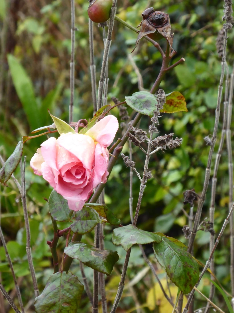 In the field the prickles are growing well, enormous fat beasts, at times stretching to two foot in diameter. The dandelion is also sporting new sets of juicy leaves and the sorrel continues to produce copious amounts of new leaves. Frozen yellow corn cockles and dark mulberry red dogwood, alongside the mauve flower of the spear thistle and a solitary rose all add their colour to the winter scene. The spear thistle belongs to that amorphous group known as ‘weeds’, often considered a pest by gardeners. However, its seeds are used by birds, the flowers are a nectar source for butterflies and are also pollinated by bees and other insects. In addition to this they are edible for humans. In Portugal during springtime, they are sold in bunches at the markets. In a study published in 2010, ‘Ethnobotany in the New Europe’ the research showed that the thistle contained higher levels of major nutrients than the vegetables we usually consume. The nutrients included fibre, protein, phosphorous, magnesium, calcium, copper, zinc and others. Not bad for a pest.