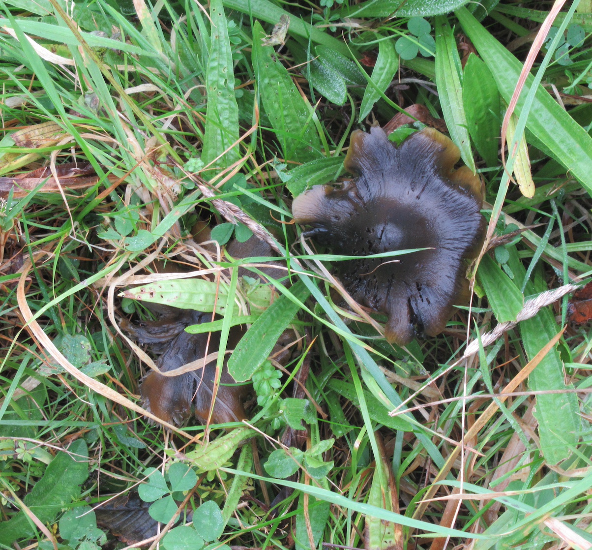 And onto the Mushrooms.  No, I have not eaten any of them.  I am very aware of my ignorance in the field of Fungi and I am happy to forego some of the pleasures of eating delicious food, in order not to die. Overly dramatic possibly, but very safe.  I found both species of mushrooms in the same area.  A few years back we did have a large delivery, a trailer load of spent Mushroom compost and these Mushrooms have appeared quite close to the area, which might have helped bring forth their appearance but Heath Waxcaps are reasonably common in Britain, found most often in grazed grassland. Our field was grazed by sheep for years but that part of the land is poor soil and the grasses and wildflowers are always short and stubby .The official name for this bright orange Fungus is Gliophorus Laetus. The Glio comes from the Greek word glia, meaning glue and the Phorus comes from the Latin word meaning bearing.  It is a description of the gluey liquid that coats the caps and stems of these mushrooms and gives them their shine.