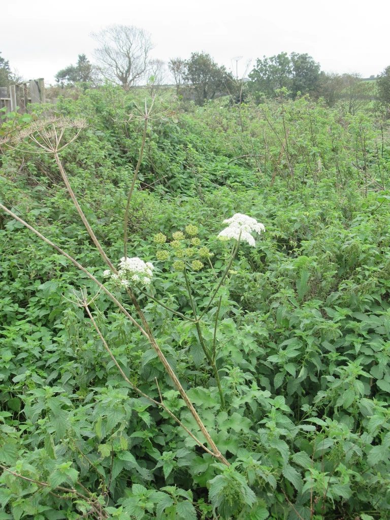 Taking a walk around the field at the end of October I found large swathes of it to be still full of growth and colour but aware of the closing down of nature slowly creeping across the area. The field was getting ready for its winter sleep and elements of decay were appearing. Checking over the trees I found the Field Maples, the Rowans, the Oaks, the Italian Alders, the Autumn Olives, the Junipers and the Wild Cherry trees were all doing well, looking strong and ready to face the relentless Westerlies which regularly pound this hillside. The Silver Birch, the Beech and the Cobbs struggle to fully establish themselves – they hang on in there, often bent double from the prevailing winds. I am hoping that the rows of hedge plants we have dug in to surround the copse will eventually help reduce the impact of the wind. We have lost half a dozen of the hedging plants but most are thriving and looking robust.